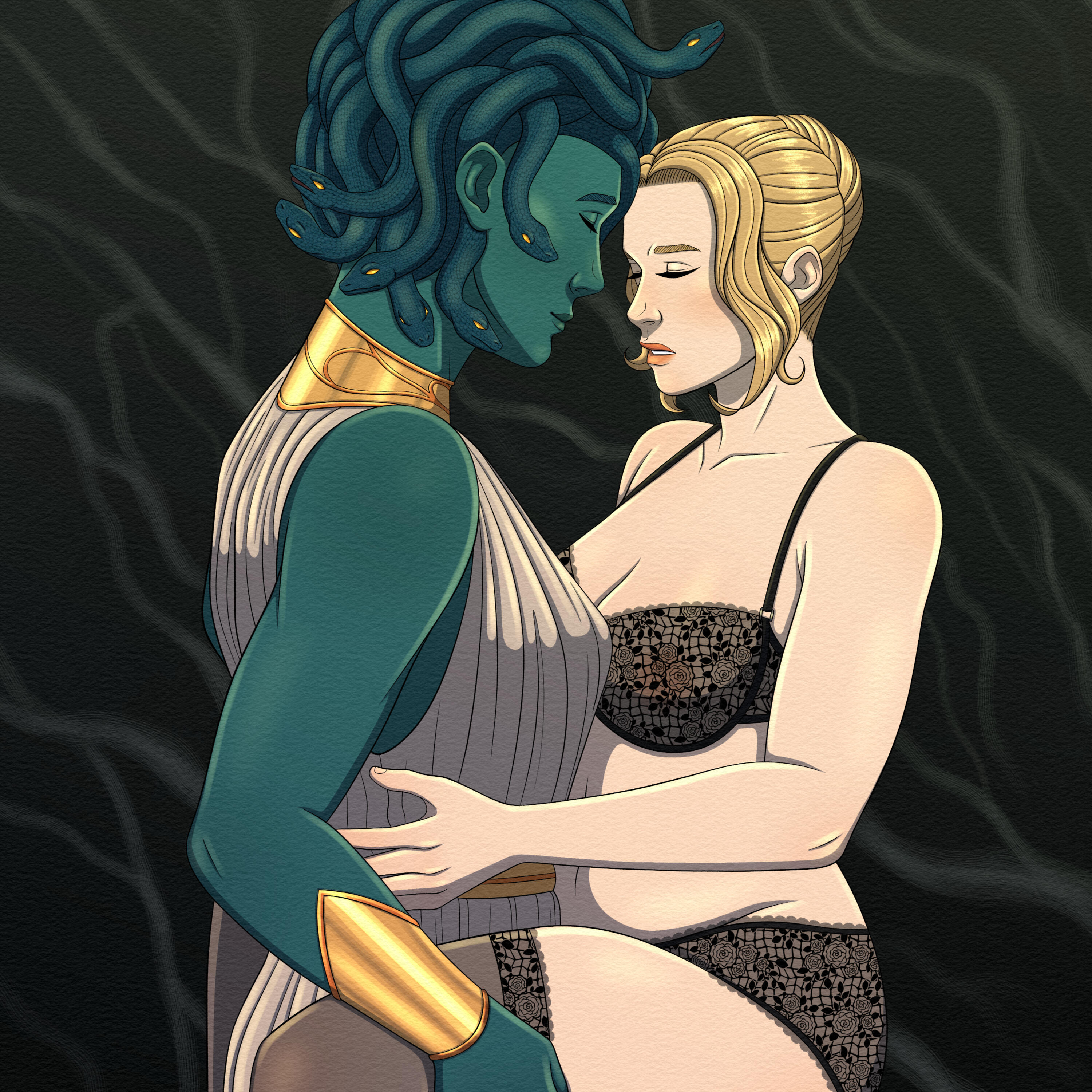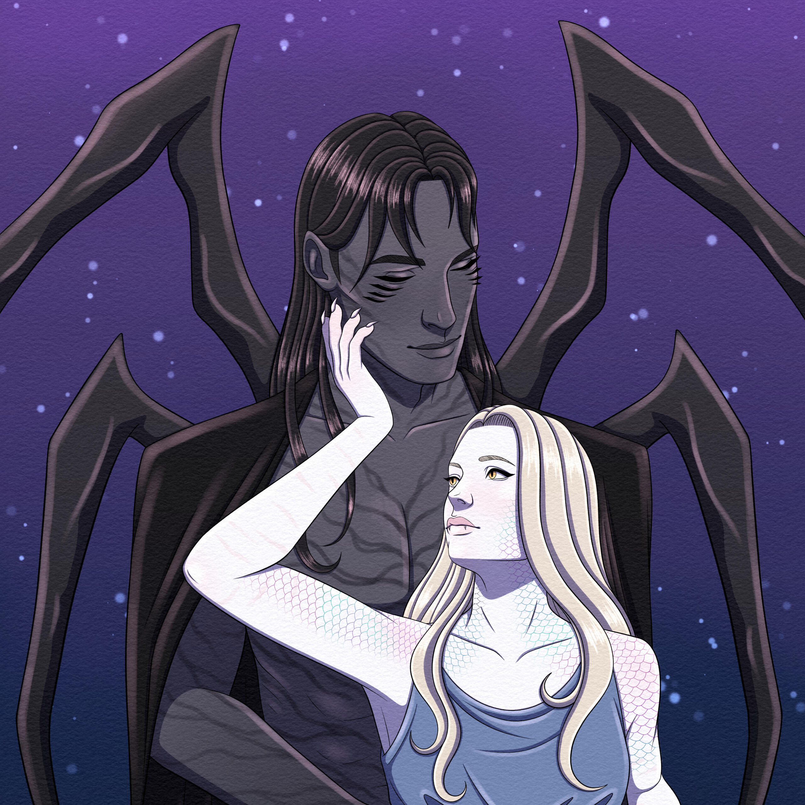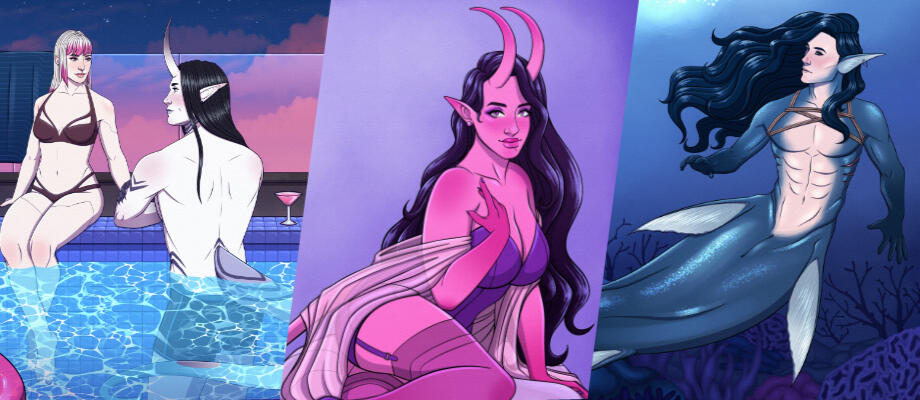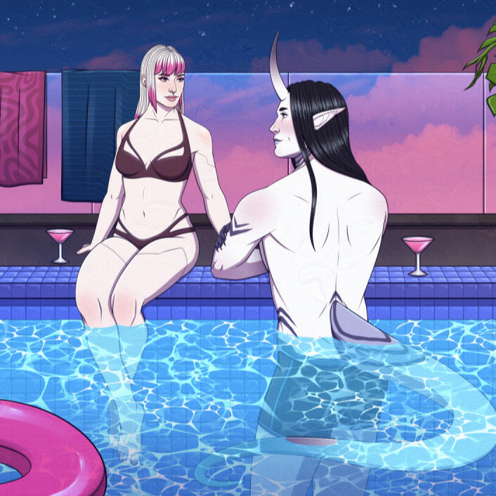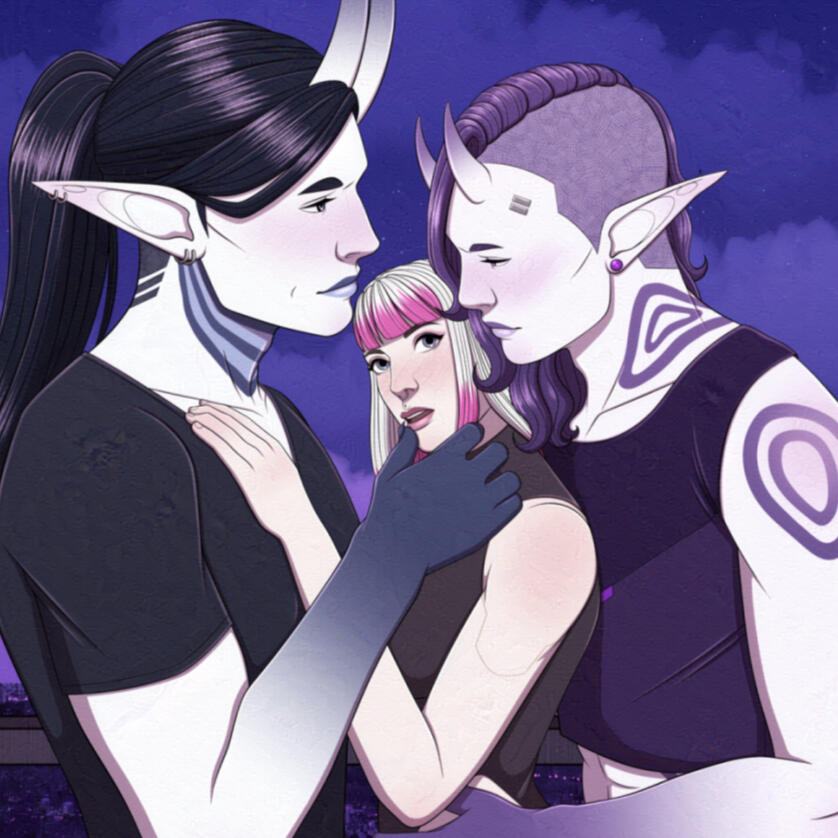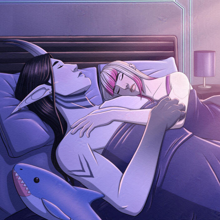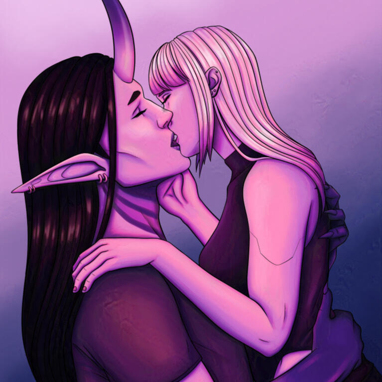 Hello! I'm Nova, a programmer by day, and digital artist by night. I love to draw anything science fiction or fantasy, whether it be robots, aliens, monsters, and many more! I have a soft spot for monster romance, which I often reflect in my work. I enjoy depicting relationships between humans and their monstrous lovers, whether it's fluff or smut.